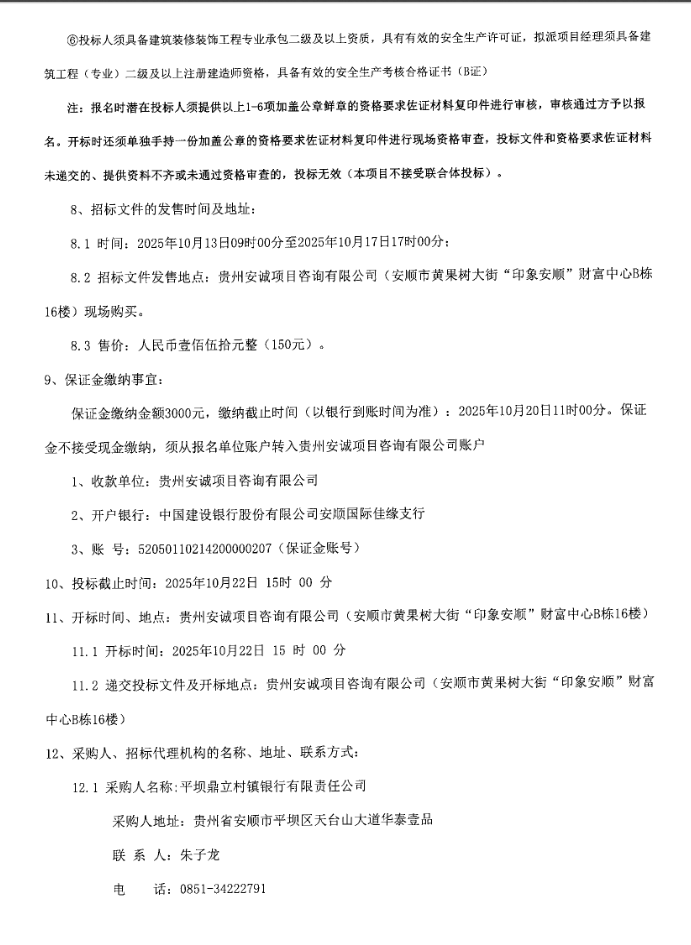 平坝鼎立村镇银行食堂装修工程竞争性磋商公告